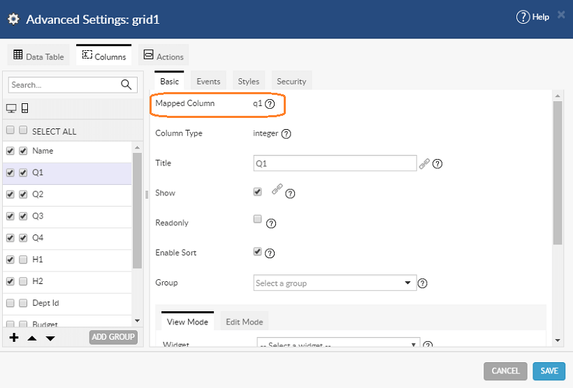You can combine two or more columns to be displayed in a single column in a Data Table. Use Case: From the Department table, display two half-yearly budget figures by adding the values for first two and the second two quarters. We will be using the hrdb that is shipped with WaveMaker.