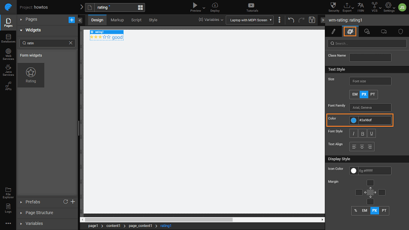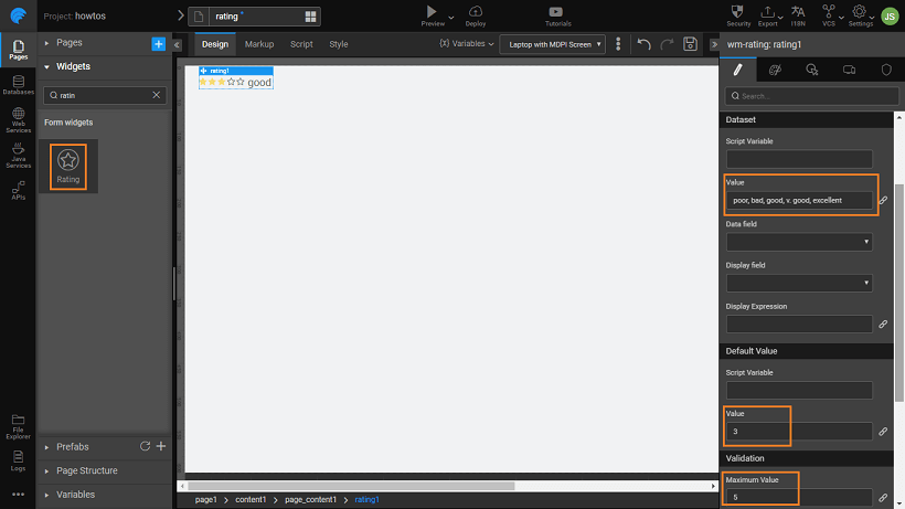 Drag and drop a rating widget on the canvas.