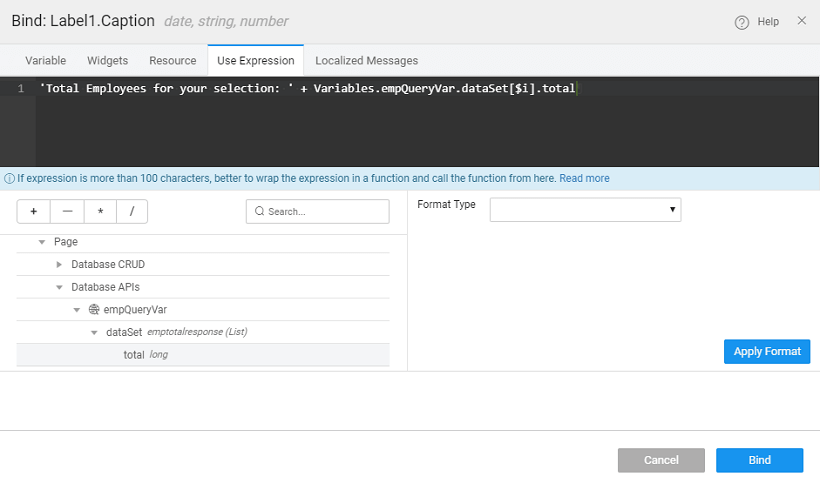 Bind the caption property of the Label widget to the output from the query