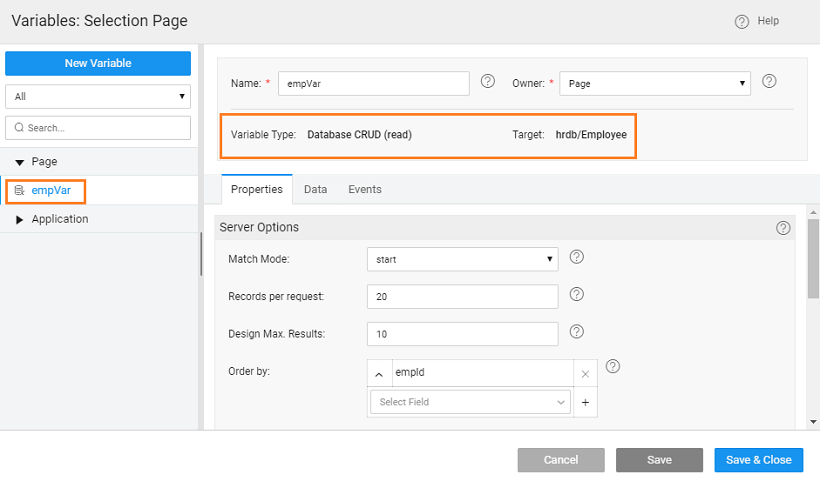 Create a Database Crud Variable for the Employee entity