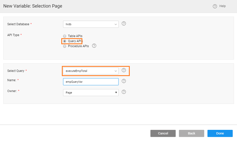 Create a Database API Variable for the Query service