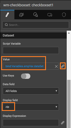 - Repeat the above two steps for Radioset and Checkboxset. Choose the appropriate properties.