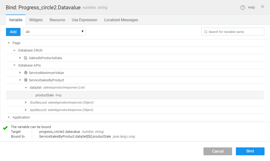 SalesByProduct.dataSet[$i].productSale.- Click bind for the Default value in the properties.