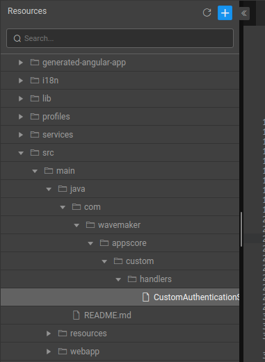 Create a service in the src/main/java inside the handlers folder. For example, UserManagementApp/src/main/java/com/wavemaker/appscore/custom/handlers/CustomAuthenticationSuccessHandler.java
