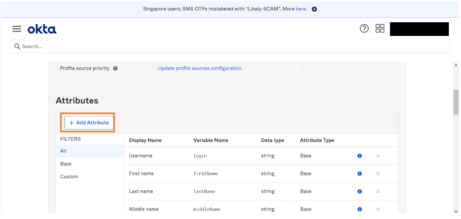 - Go to Okta API Scopes and click Grant to include it as scope.