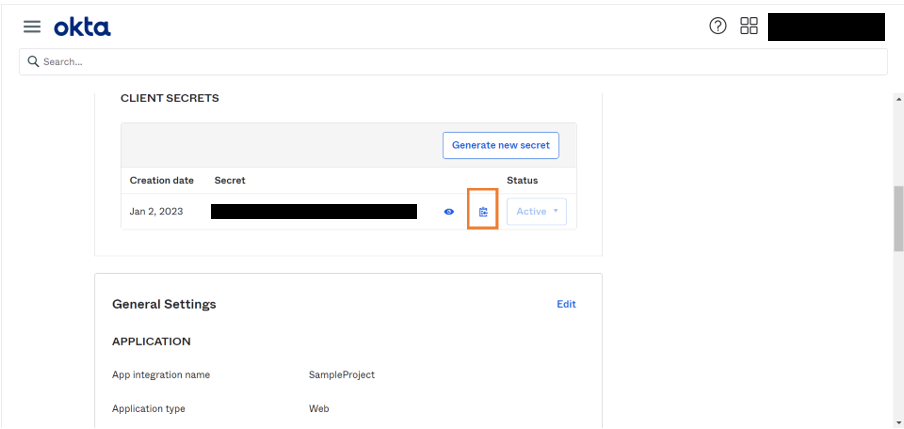 - Click Copy icon to copy the Client Secret to clipboard. Later, provide this information in WaveMaker security configurations.