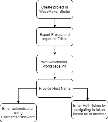 - Token - For this, you need to have an active WaveMaker session. Use the URL <https://www.wavemakeronline.com/studio/services/auth/token> to obtain token value and enter it at the prompt. Do not logout of the WaveMaker session till you complete the synchronization.
