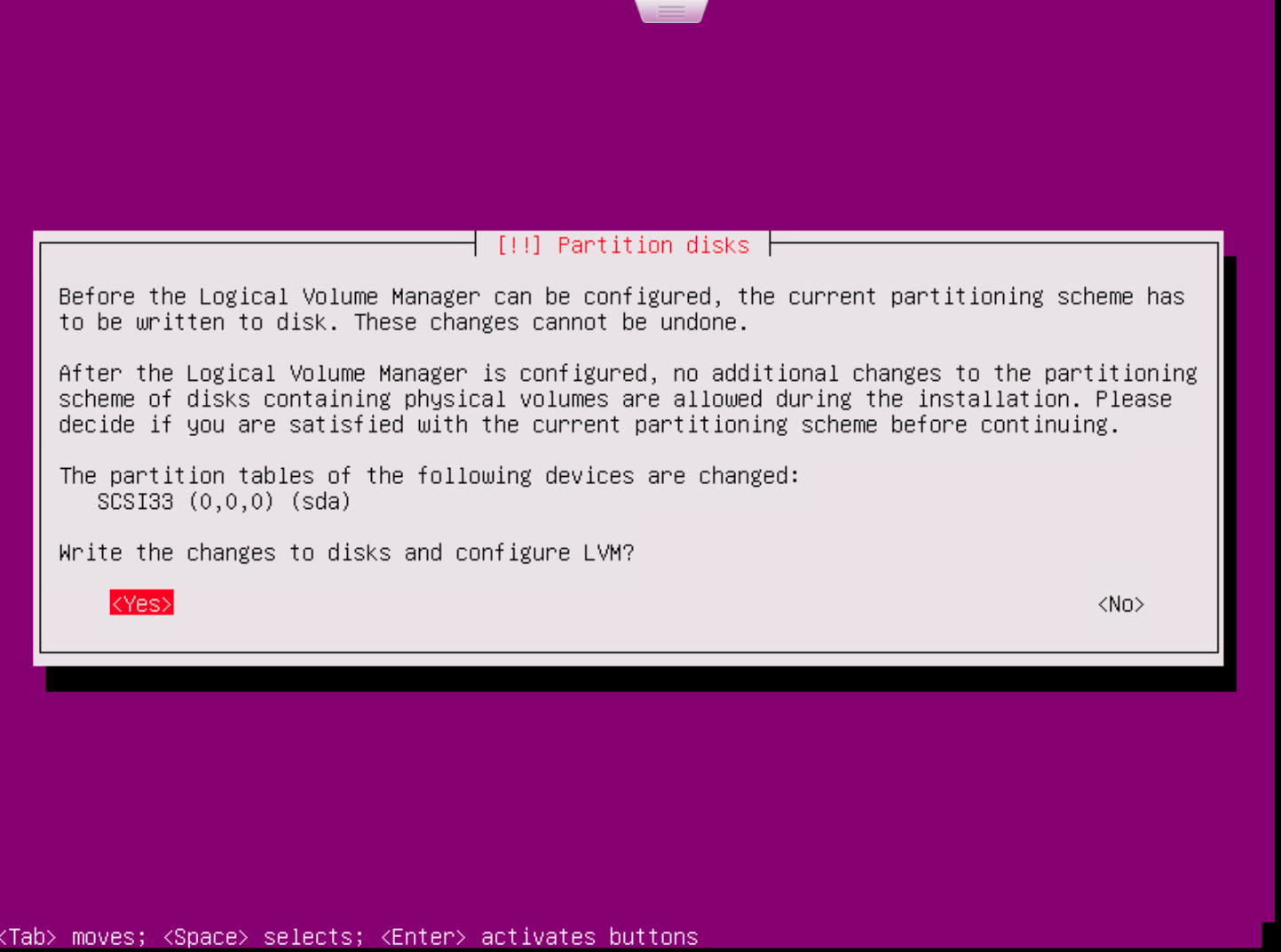 • Choose the option to write changes to disk and configure.