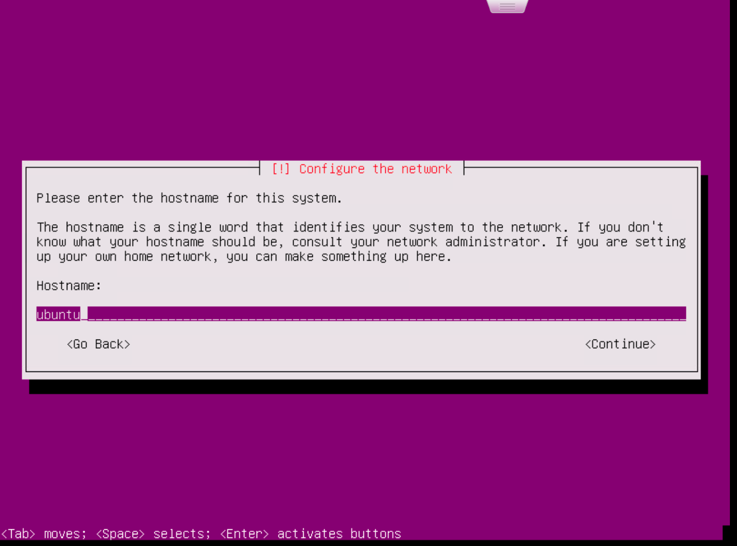 • Provide hostname for the system to configure the system.