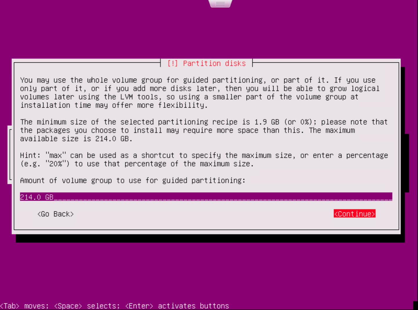 • Select amount of volume to do the partition.