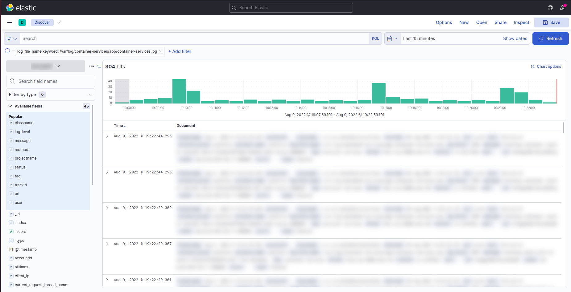 - Select Discover from the Kibana and add the Filter by selecting log_file_name.keyword as container-services.