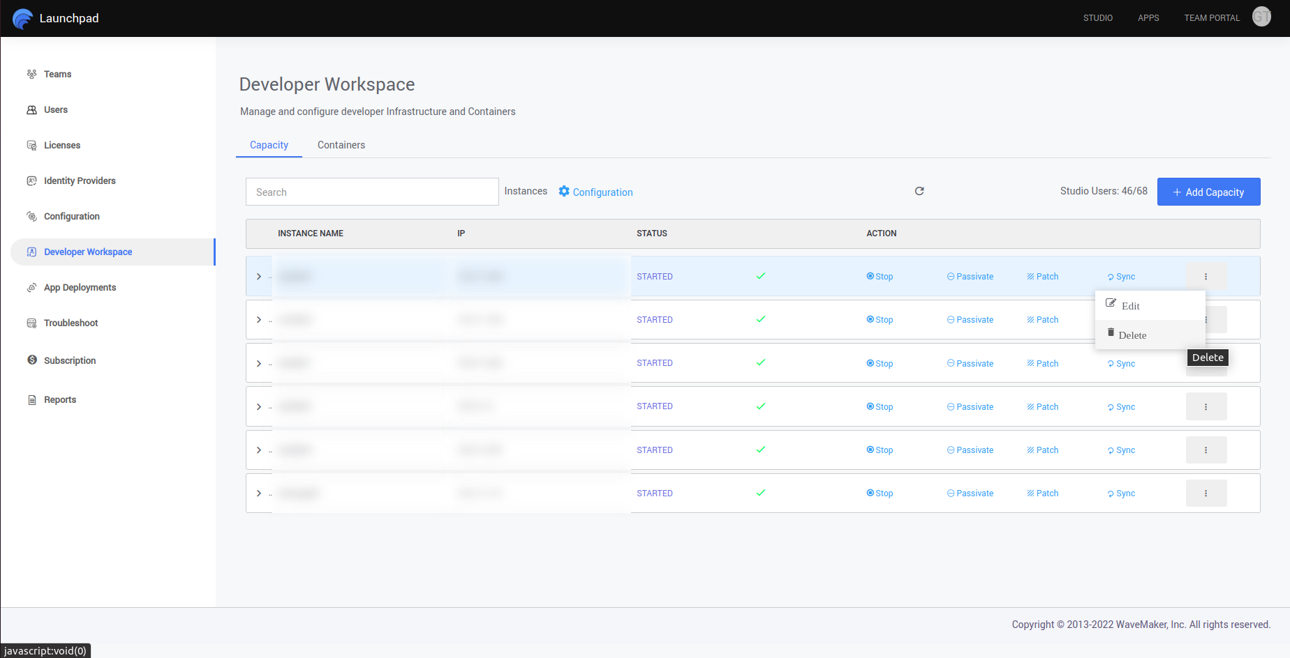- Launch StudioWorkspace Instance/AppDeployment Instance in different Infra providers from Link WaveMaker Launch Instances.