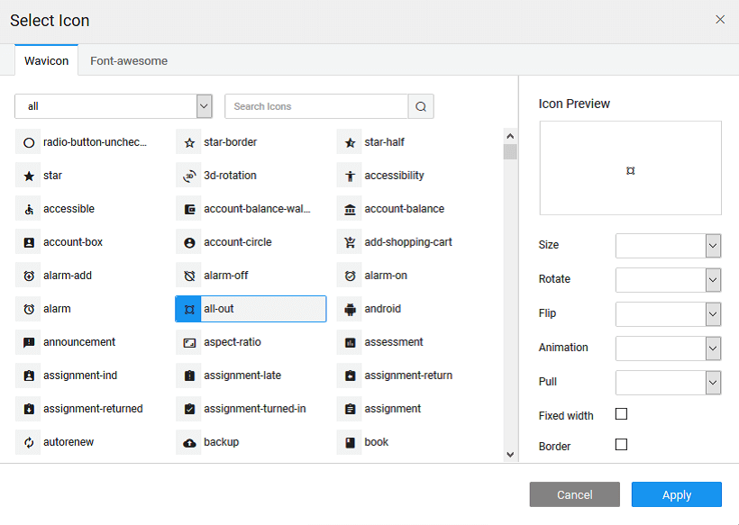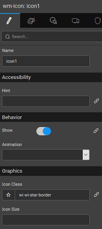 - From the icon selector on the left of the Icon Class property, you can:
