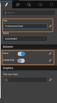 - Title: This is the title that appears on the step, which is changed by the user in the wizard step properties.