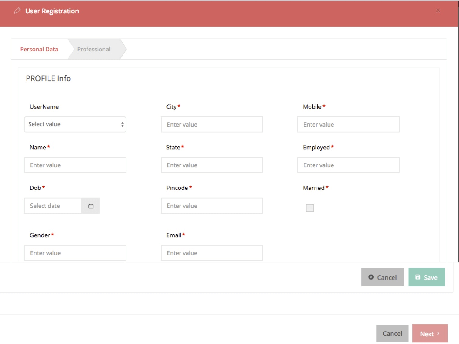 - Enter the Personal Details and click on NEXT to enter Professional Data