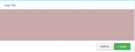 - Drag and Drop a wizard on the canvas. Once the Wizard is dropped onto the canvas, you will see the UI as shown below. By default only one step with the Title as Step Title is created. Note there are two action buttons – Cancel and Done respectively