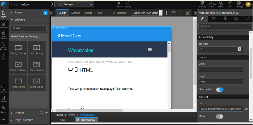 Note: Since WaveMaker is secured, only secure URLs can be displayed in the Iframe.